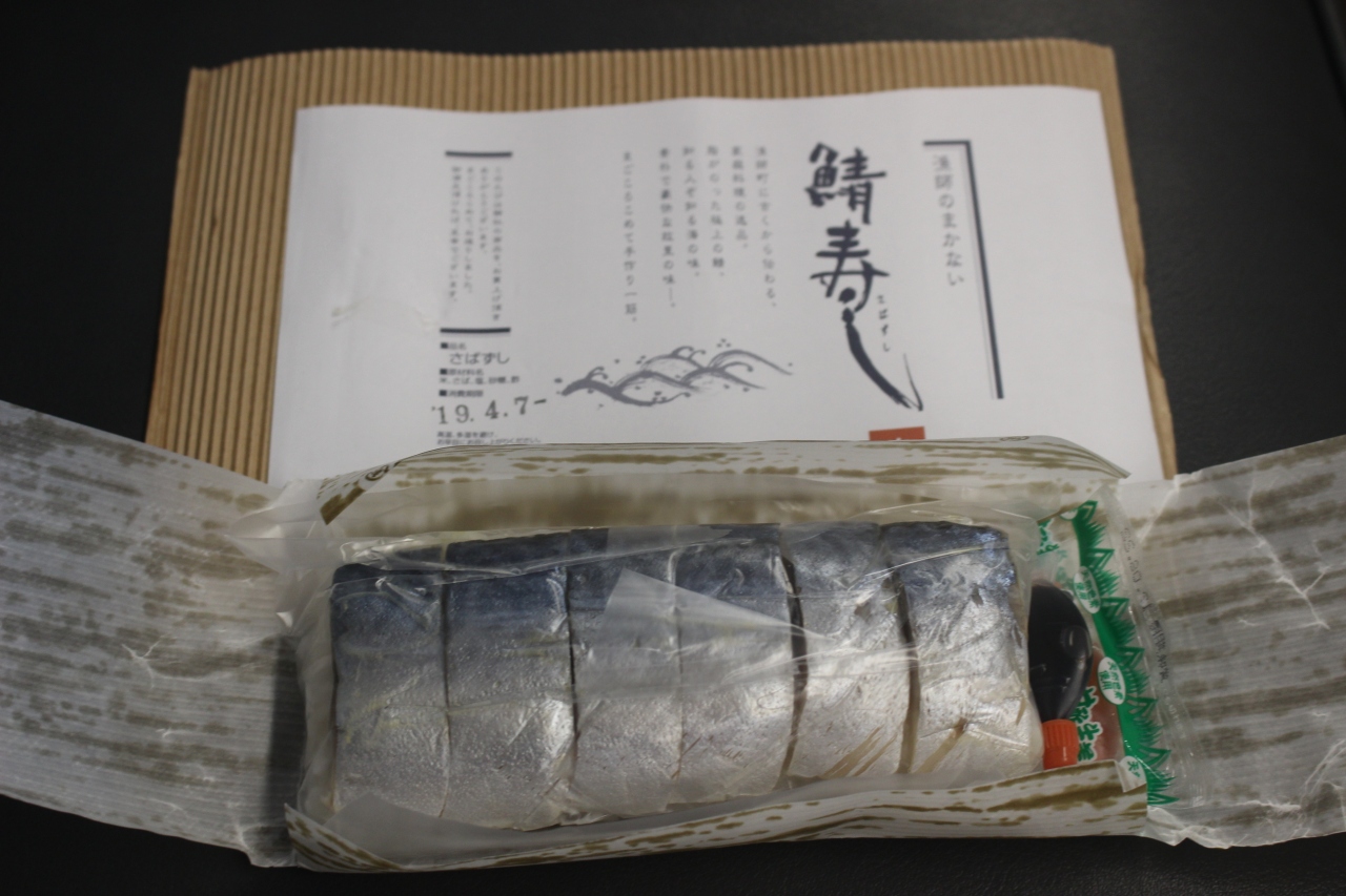 スタンプは観光案内所にあります 空弁は鯖寿司とホルモン(ハラミ)弁当を買いました