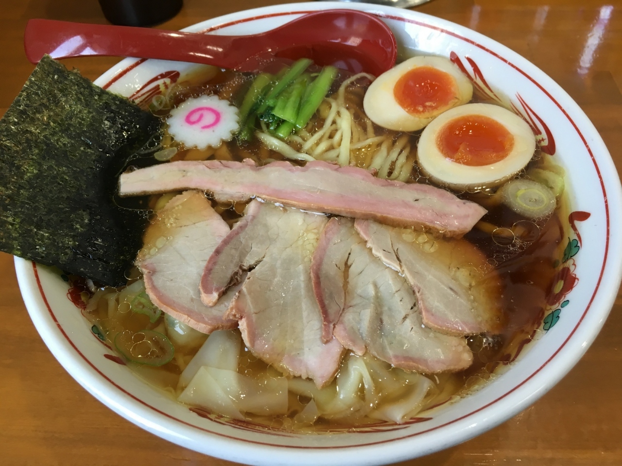 久しぶりにとら食堂のラーメンが食べたくなり訪れました。土曜日の11時半頃に到着すると、既に16組程の行列が出来ていました。30分くらい待って席に座ることが出来ました。味玉入りワンタンのラーメン950円を注文。以前に比べて値上をしたようです。あっさりしたスープですが奥深い味わいです。麺との相性もとても良く素晴らしく美味しかったです。