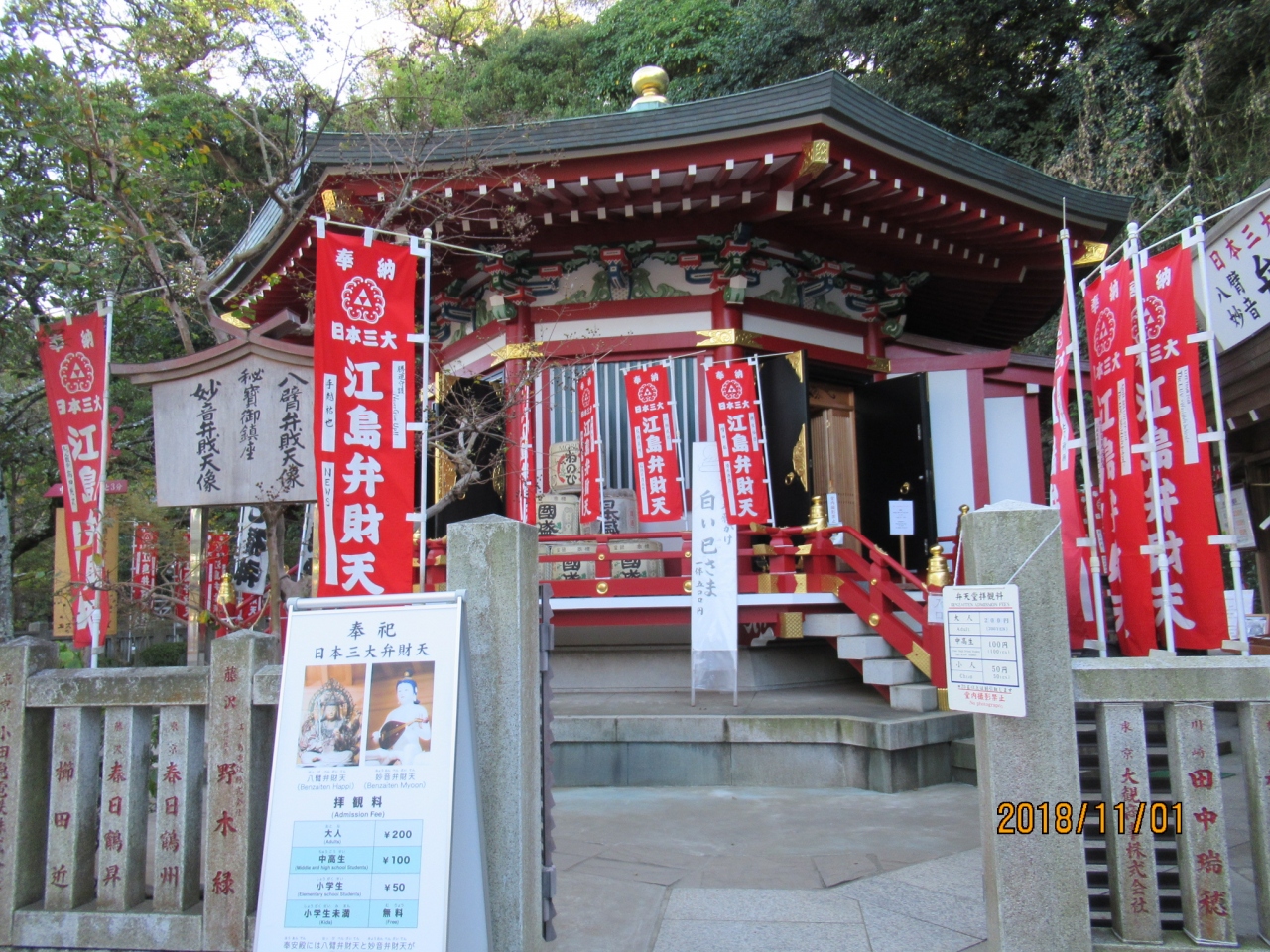 日本三大弁財天の1つであり、ほかには安芸の宮島、近江の竹生島があるようです。