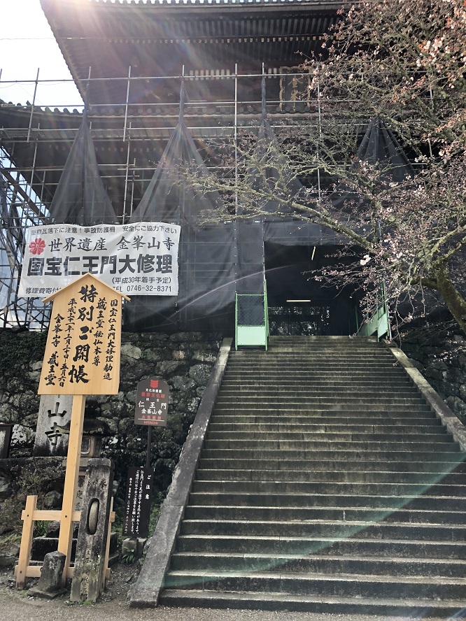 駅から道を上がって行けば、一番最初にある、吉野山のシンボル 金峯山寺。