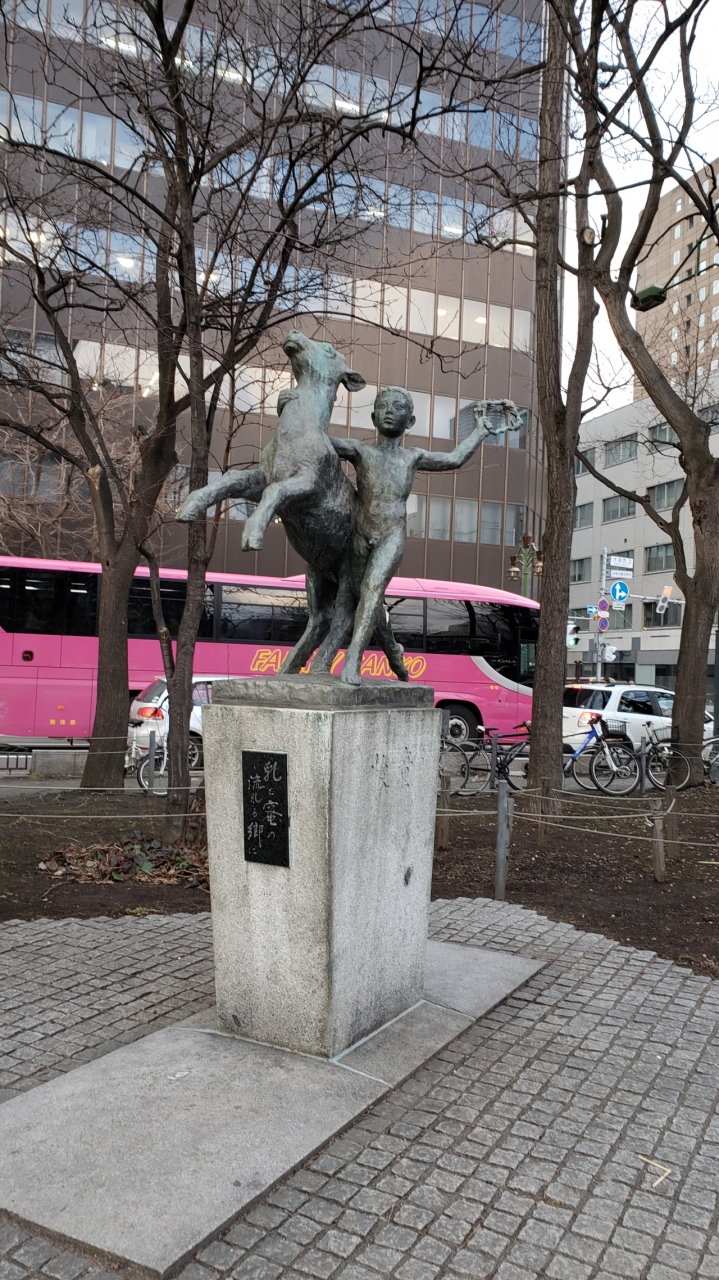 公園内にある像のなかでは一番古いものなのかな?と思いますが古さはあまり感じられず少年の楽しそうな雰囲気が伝わってきます。