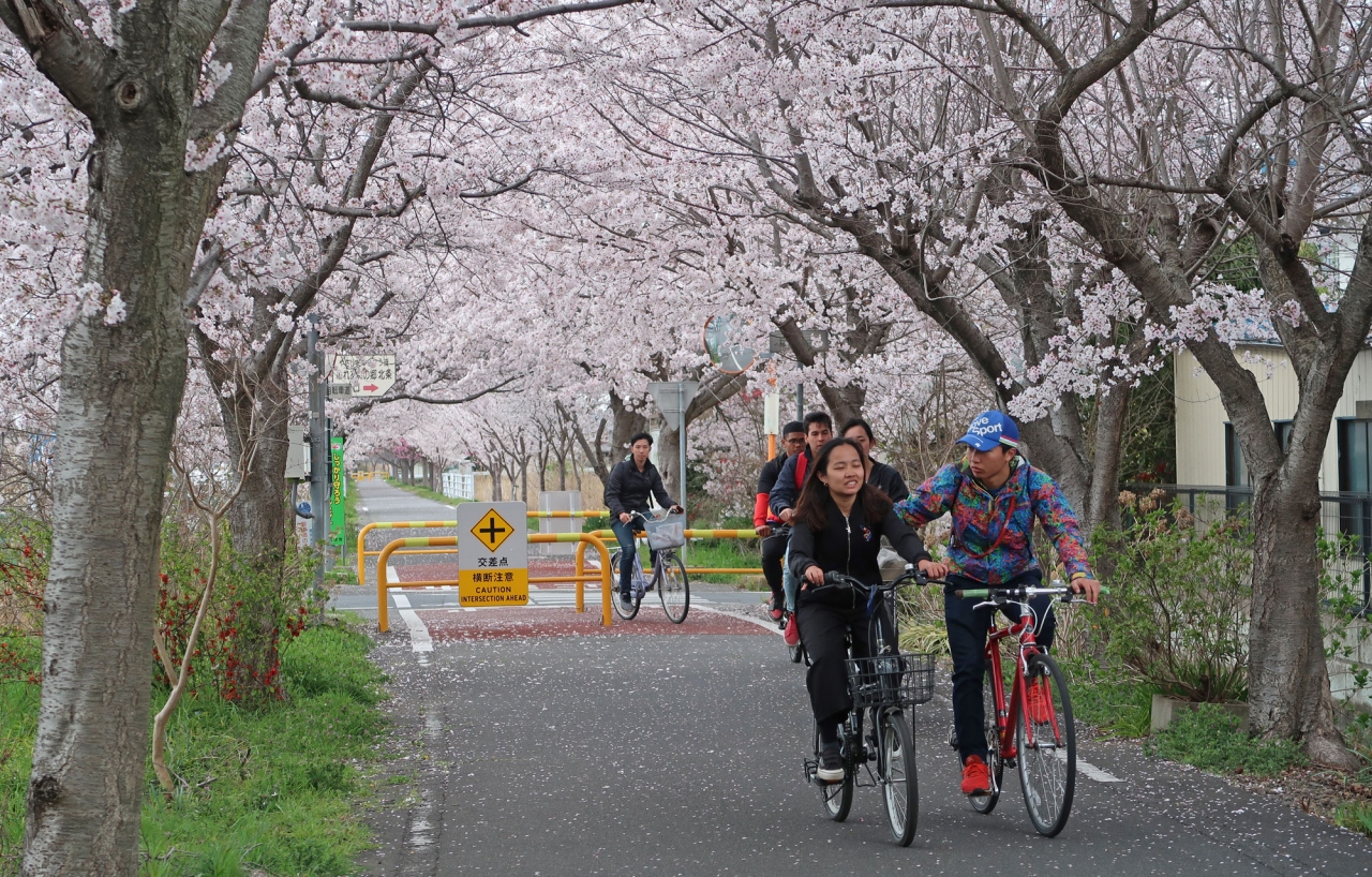 ちょうど桜が見ごろの頃で自転車に乗りながら