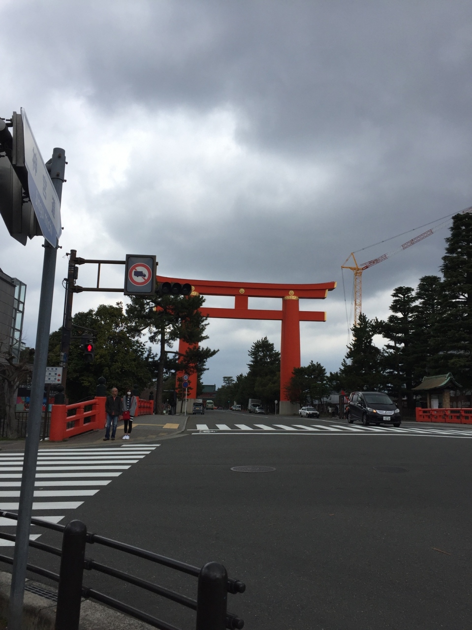 これまでで見た中で一番大きな鳥居です。平安神宮といえばこの鳥居、遠くからでもよく見えます。鳥居の周りも広々と開けていて、散歩したりしている方も見られました。鳥居から平安神宮までは結構な距離がありますが、ショートカットせずにぜひ鳥居をくぐってから行ってほしいです。