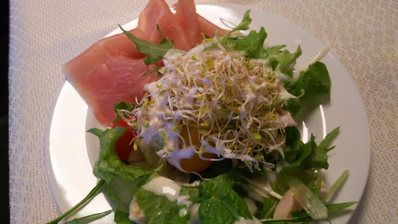 生ハム、ドレッシングは三種類