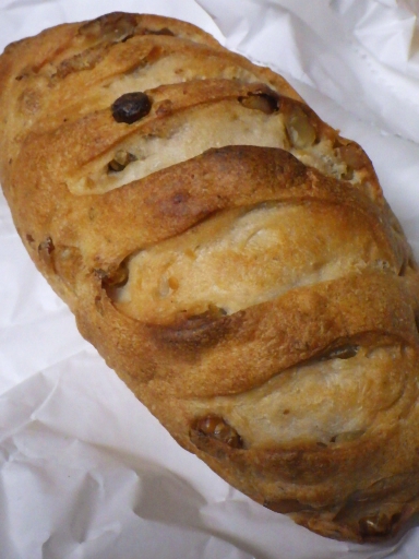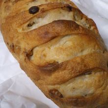 若干細長く仕上げられたフランスパンの中に、砕いた胡桃がたっぷり含まれている。