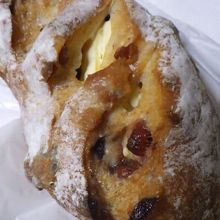 クリームチーズのまったりとした食感と、クランベリーの甘酸っぱさが、甘みの少ないパン生地の中で、適度なアクセントになっている。