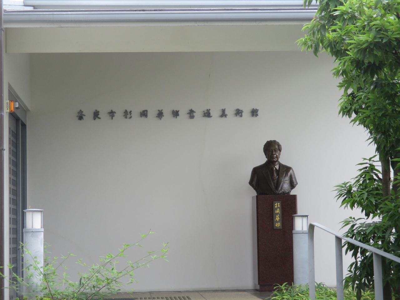 近代的な雰囲気の書道美術館です。入口にまず杉岡華邨さんの胸像があるのですが、あまりのリアルさにまずびっくりです。この日のテーマは「涼を誘う」ということでした。涼と結びつくかはわからないですが、バラエティーに富んだ作品を楽しめました。