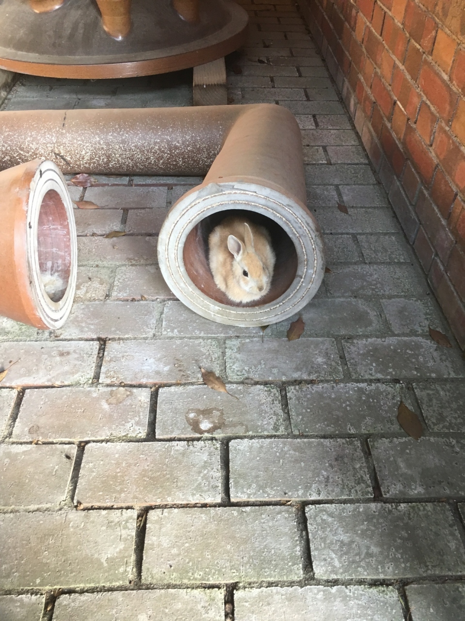 毒ガス製造器が屋外展示されていたのですが、ふと見ると可愛いうさちゃんが中からひょっこり顔を出しています。