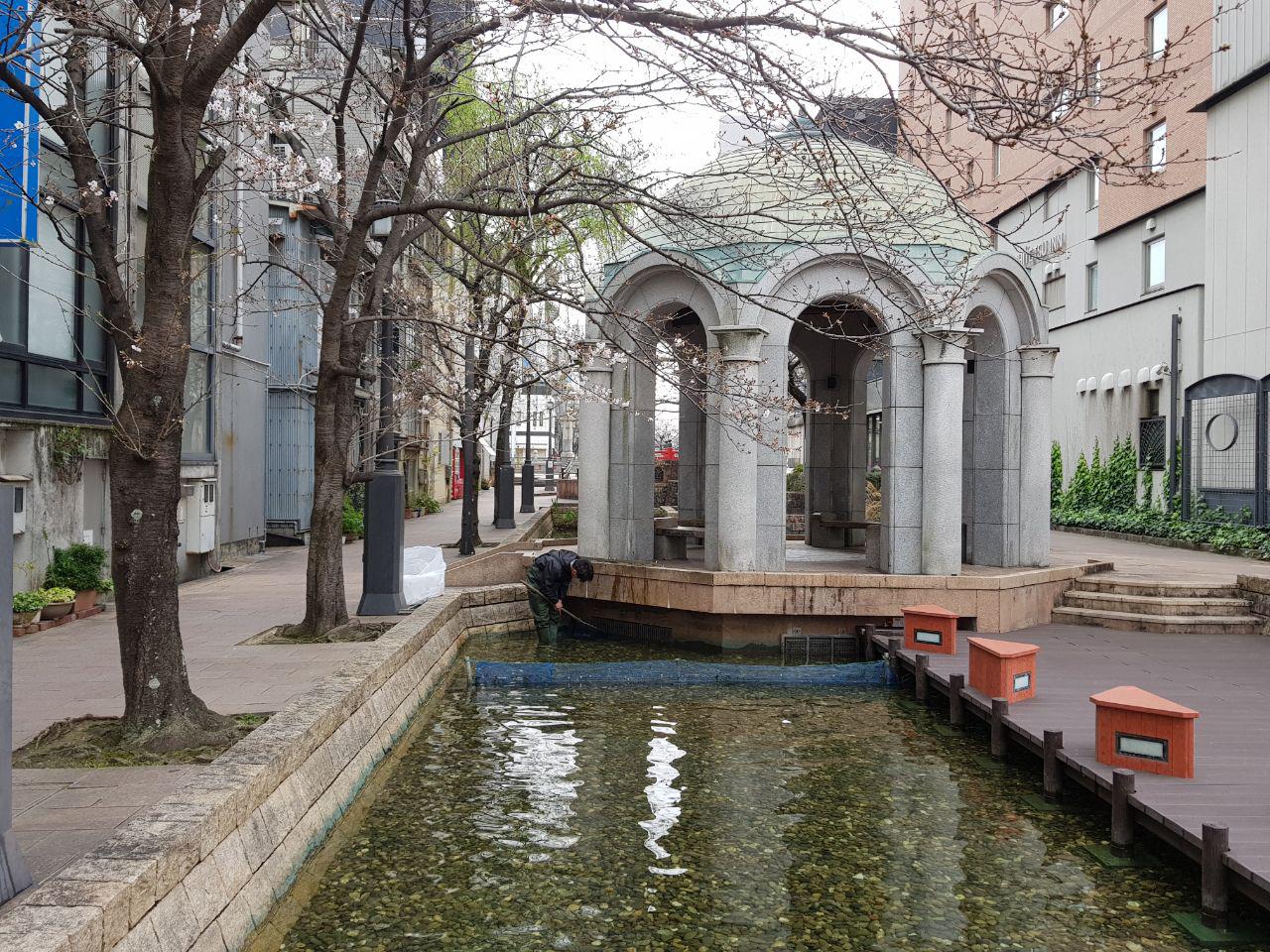 川の掃除をしている人がいた。実際、流れがとても綺麗だった。