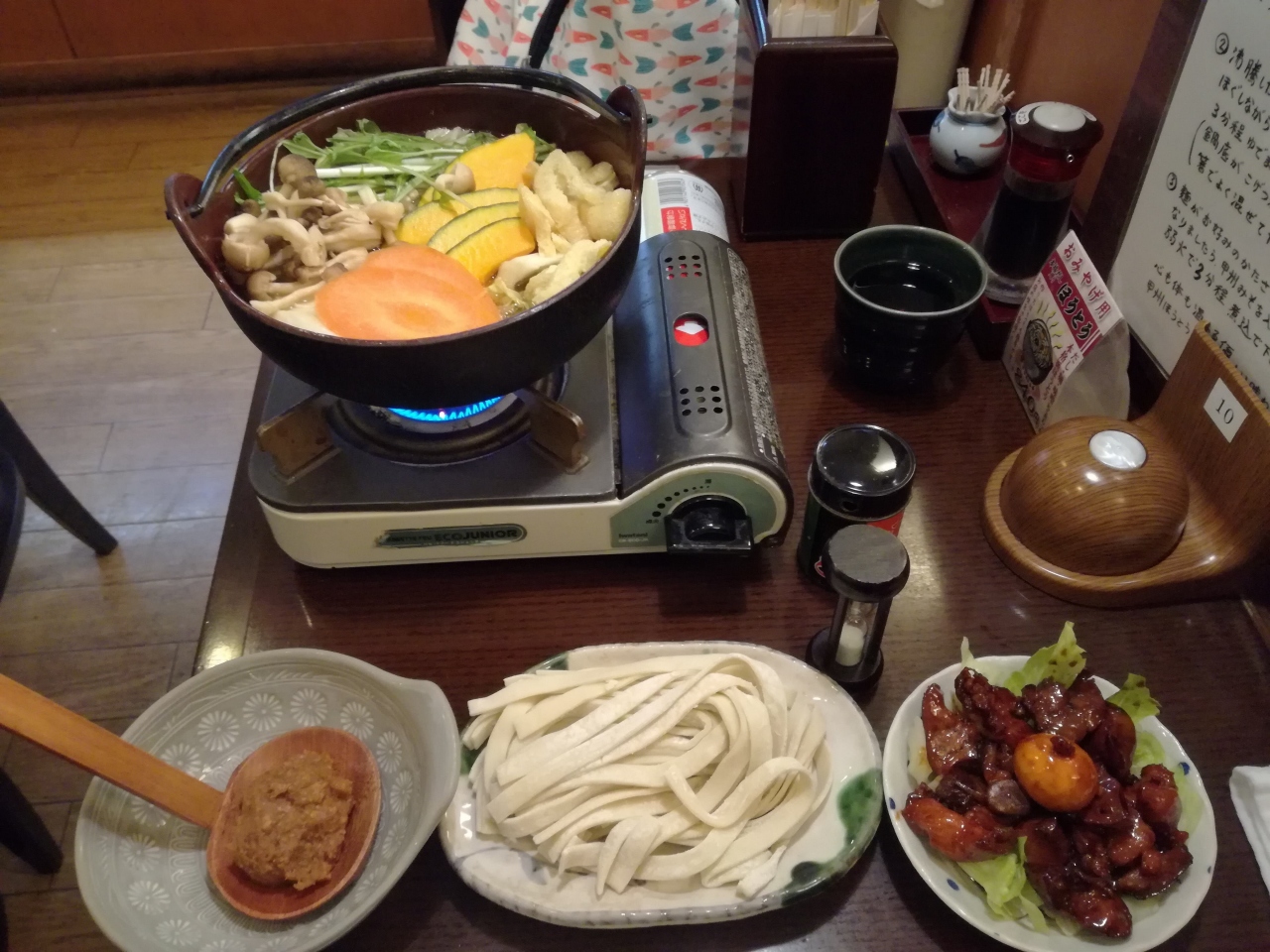 ここのお店は、山梨の料理として有名な鳥モツ煮の発祥の店のようです。もつ系は得意ではない私ですが、メニューに載っていない、ミニサイズの300円ちょっとの鳥モツ煮なら、美味しく完食できます。自分で作るほうとうと言うのも本当にありがたいです。(なぜなら私はしょっぱいものが苦手なので。。。味噌を減らすことができるのがありがたいんです。)