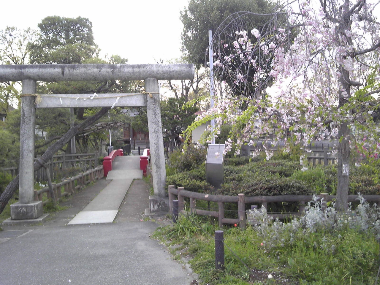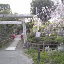 鳥居の前には、これまた小さなソメイヨシノがあり、