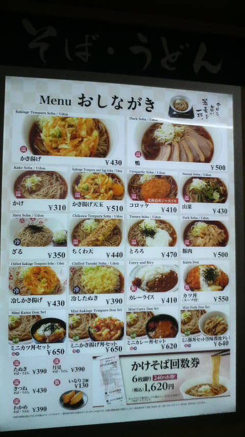 (お得な「かけそば回数券」も売っていて、頻繁に使う方にも便利でしょう)