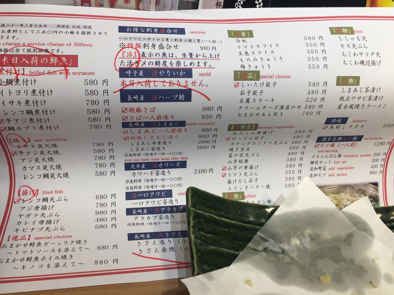 JR博多駅の博多口から歩いて4、5分くらいか。ビルの地下1階にある居酒屋。店内はかなり広いが、カウンター席は手狭。一人客は相手にしていないようだ。刺し盛りを1人前にしてくれ、なかなか新鮮だったが、天ぷら盛り合わせは2種類しかなく、盛り合わせになってない。