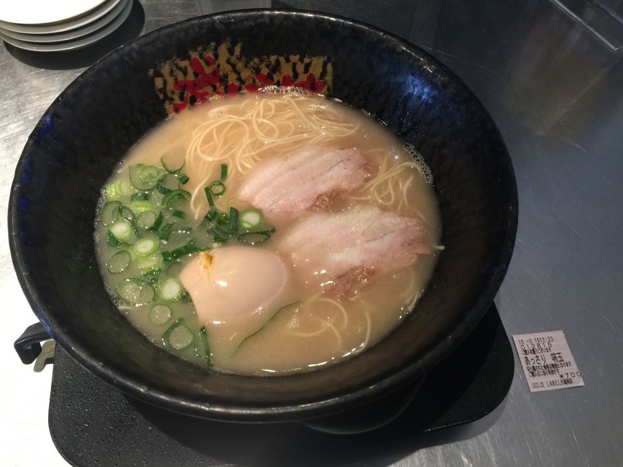 時間がなかったので、JR久留米駅内にあるこのラーメン屋に入店。あっさり味玉700円を発注。よそ者は、もっと濃ゆい味を想像していたのだが、意外にくどくなく、スイスイと食べられる。スープも十分飲み干せるレベル。
