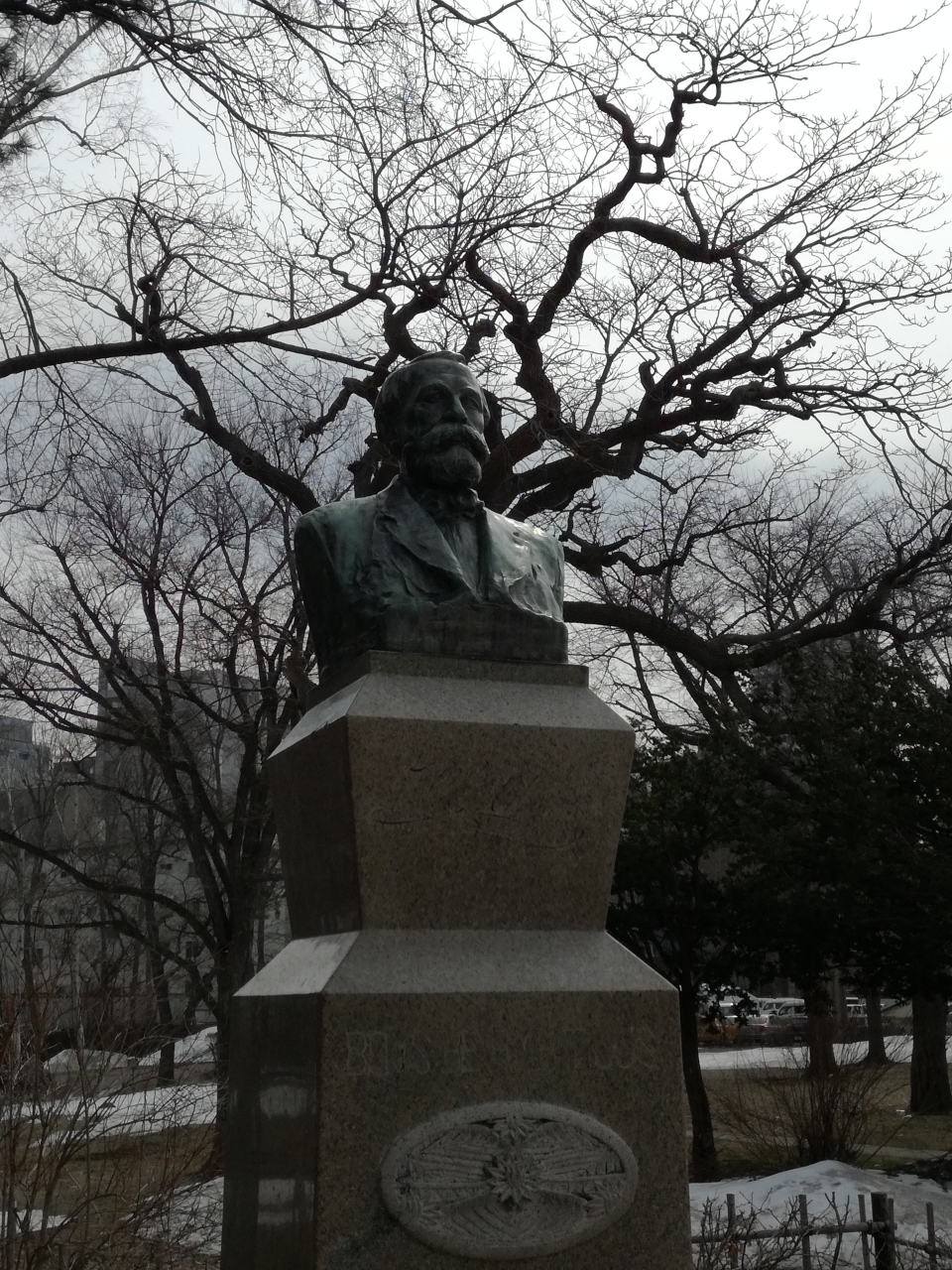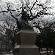 北海道大学のキャンパス内にある「Boys, be ambitious(少年よ、大志を抱け)」と言う言葉が超有名なクラーク博士の胸像です。羊ヶ丘展望台の銅像が有名ですが、こちらの胸像は、博士の顔の表情がはっきりとしていて見ごたえがありました。