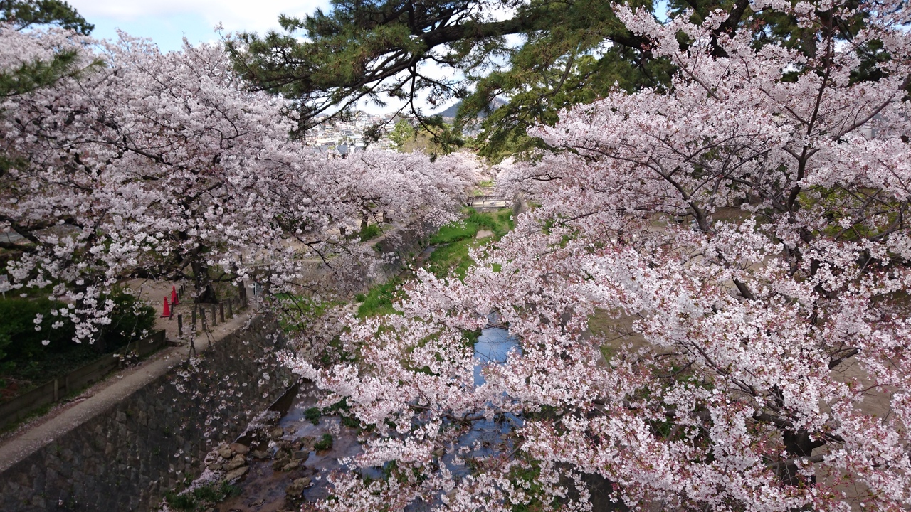 静かに花見が楽しめる公園、水と緑と花のコントラストが素晴らしい