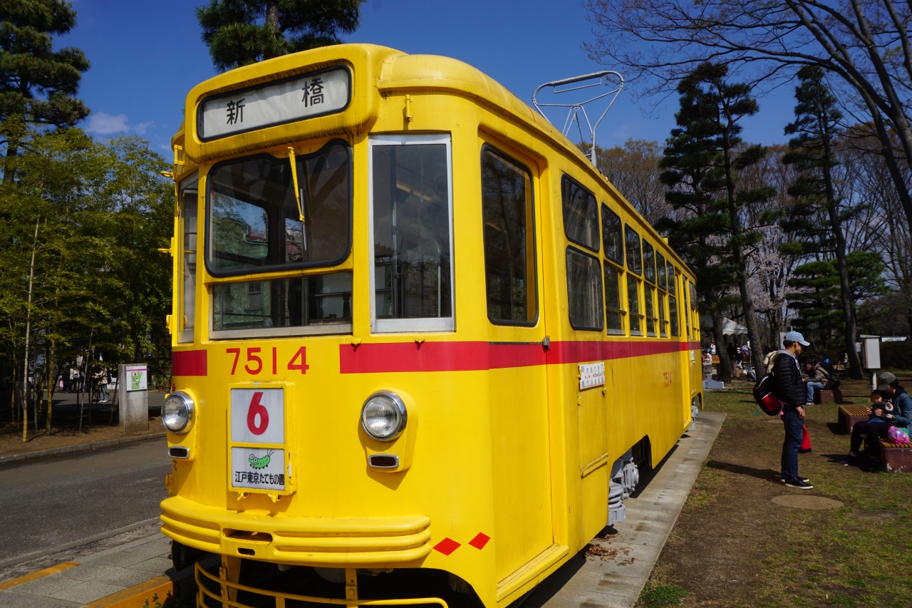 都電7500形は、鮮やかな黄色のボディ。かつて、渋谷駅から新橋、浜町中ノ橋を経由して神田須田町まで走っていた車両。今では、都電は荒川線が残っているだけですが、荒川線でもチンチンという音が鳴っていたような。いずれにしても、ノスタルジーを感じる電車です。