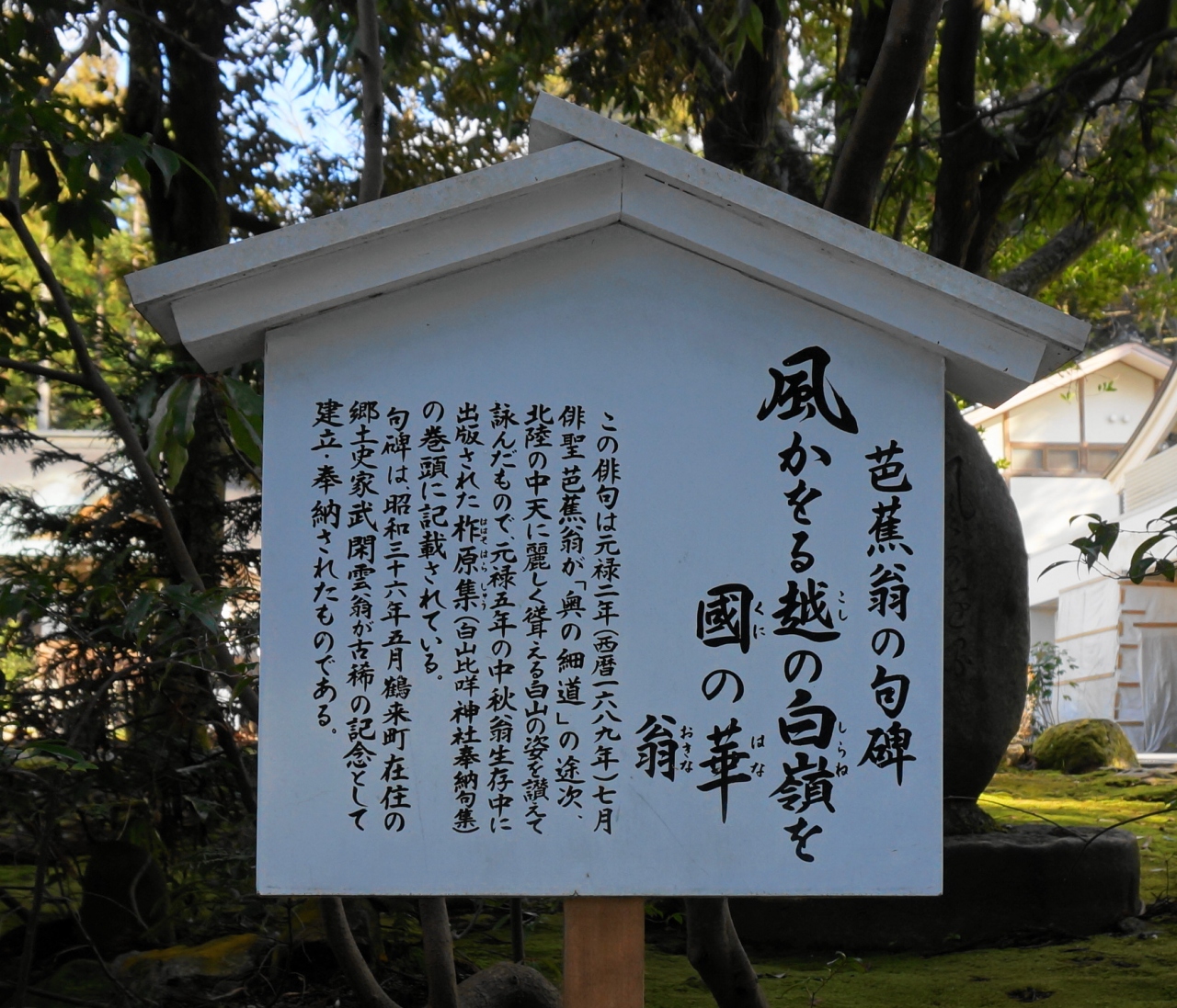 奥の細道の途次の松尾芭蕉が、白山の姿に感銘を受けて詠んだ句です。