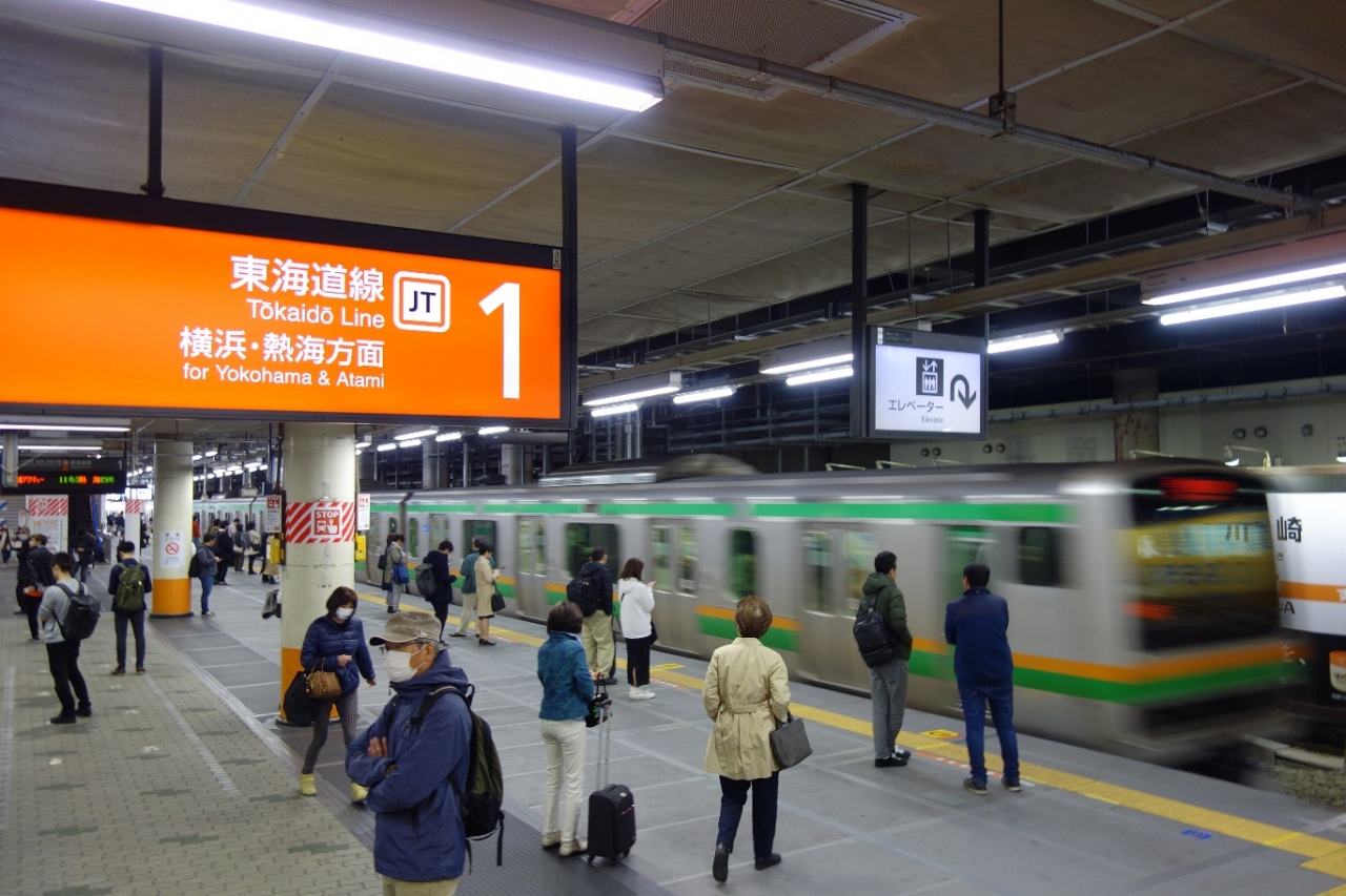 東京や神奈川近郊を走るJR線の中でも距離が有る路線です。最近は通勤族が郊外へ移り住んでいるためか通勤時間帯の東海道線の混雑はかなり激しいものとなっています。この日は川崎駅から友人を訪ねて藤沢まで乗車しました。昼間で混雑一歩手前で済みました。