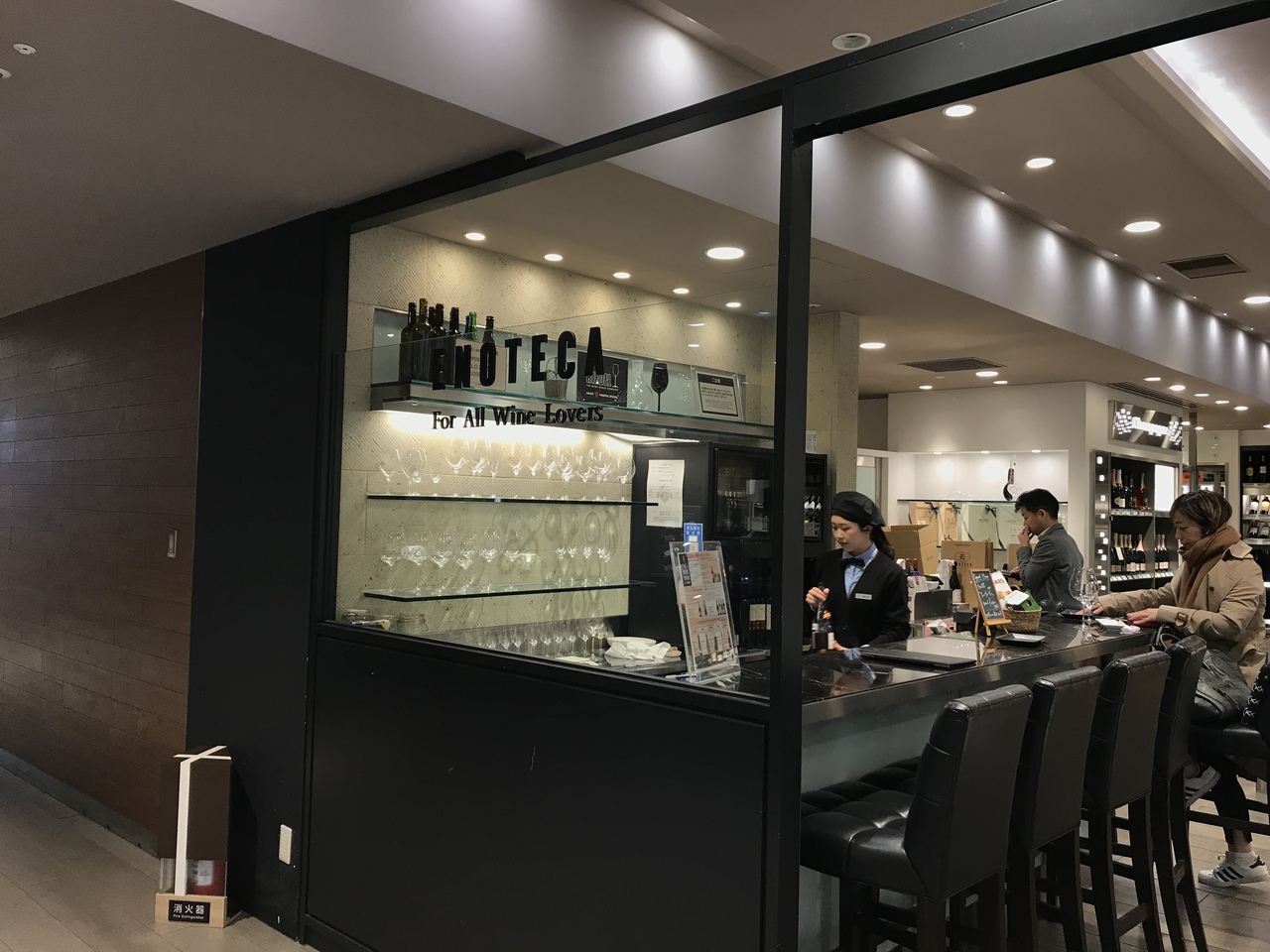 金曜日の夜、ふらっと飲みたくなって仕事の帰り道に寄ってみました♪ 銀座のエノテカは利用したことがあり席数が多かったのですが、こちらは少ないです。狭いのと椅子がボロい。ですが、一杯600円以下はお手頃かと。一杯100mlですが_φ(・_・