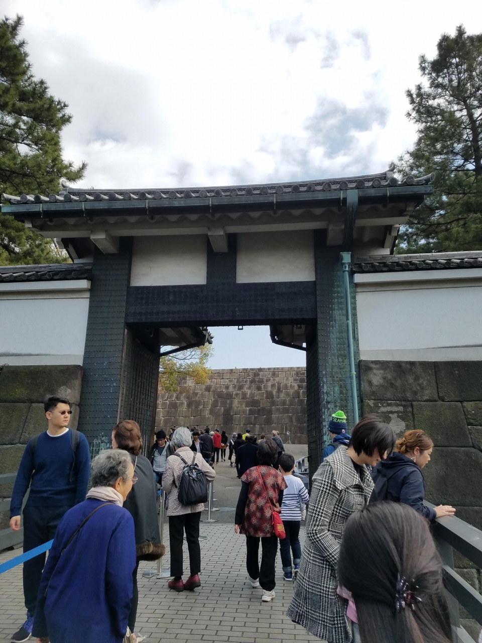 北桔橋門は、皇居東御苑の東側にある門です。北の丸公園で桜花見をしてからここから東御苑に入りました。門そのものは大きくありませんが、門手前からの高い石垣と深く満々と水を湛えた乾濠の景色が素晴らしかったです。足を止めて撮影する人も多くいました。