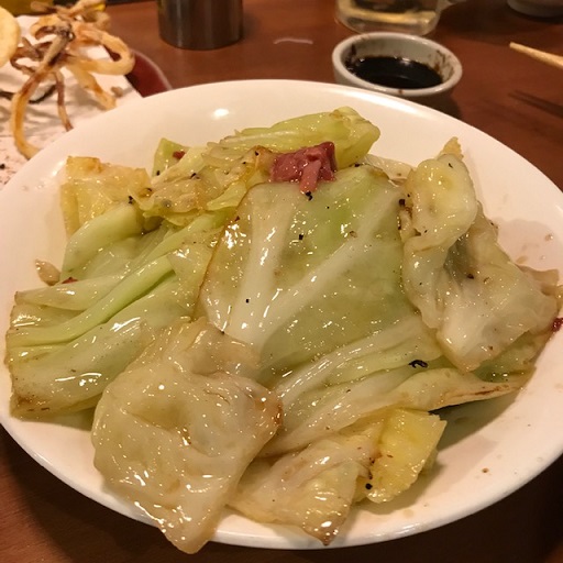 名物の酒盗キャベツにモヤシ炒めはお箸がススムススム!