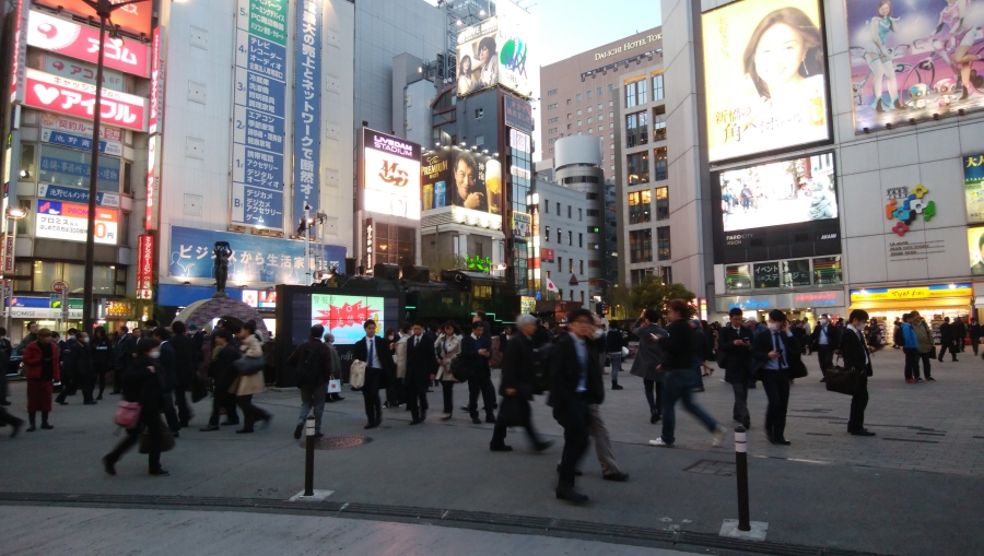 夕方ともなれば、駅に向かう人、待ち合わせの人、居酒屋の呼び込み、そして右翼の街宣車・・・