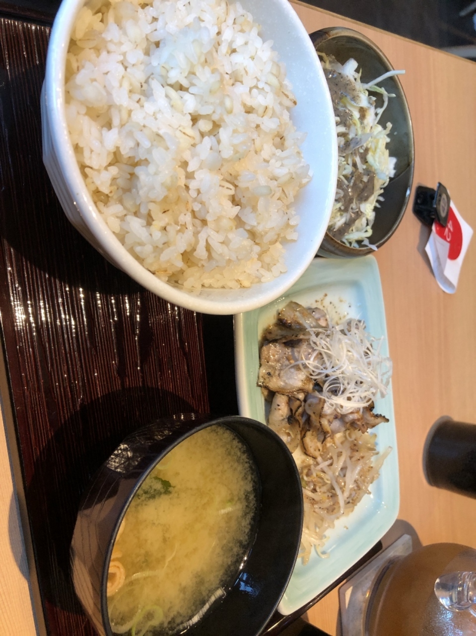 塩ダレの豚バラは味にパンチがあってとても美味しい。ご飯は麦ご飯を大盛りで注文すべし。