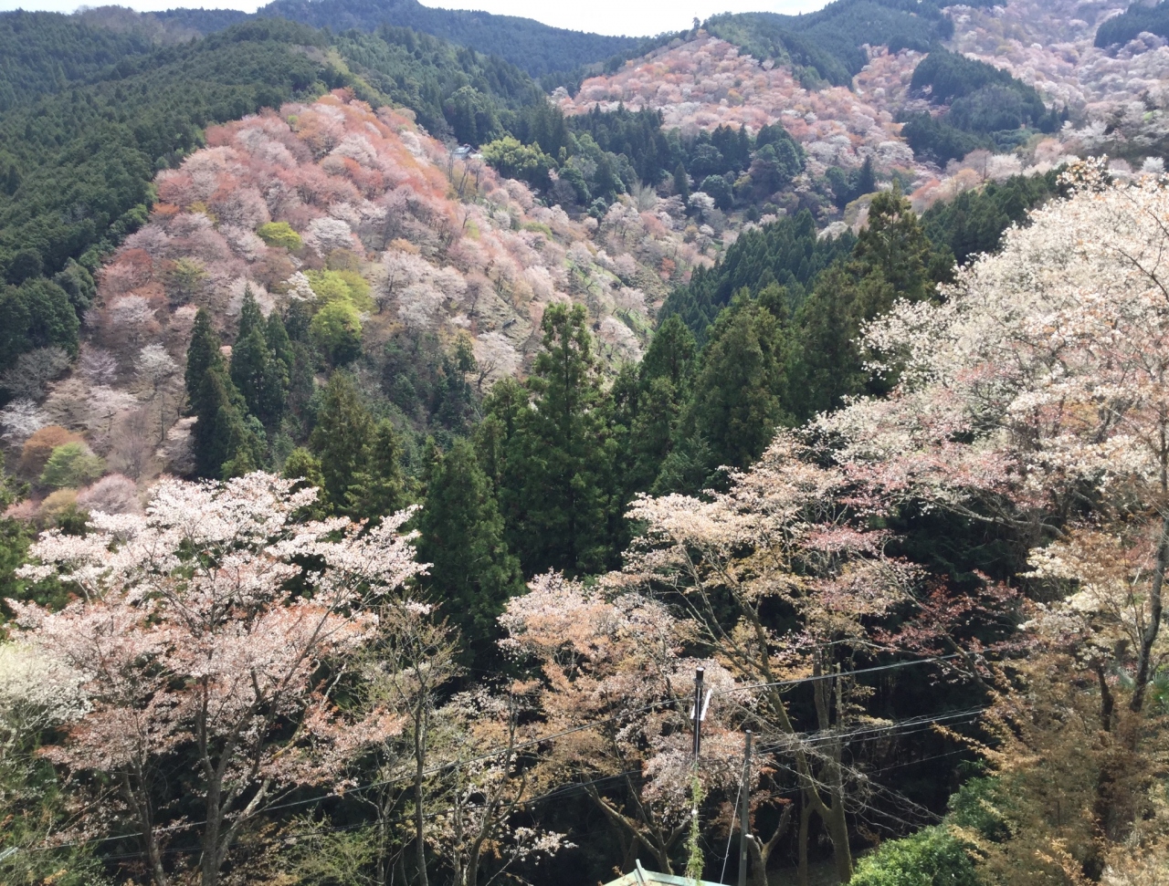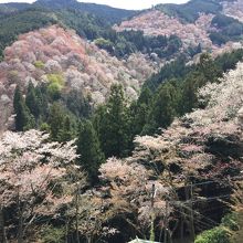 ここから見る吉野山は一目千本とも言われ満開の時期には山全体が桜色で染まっています。