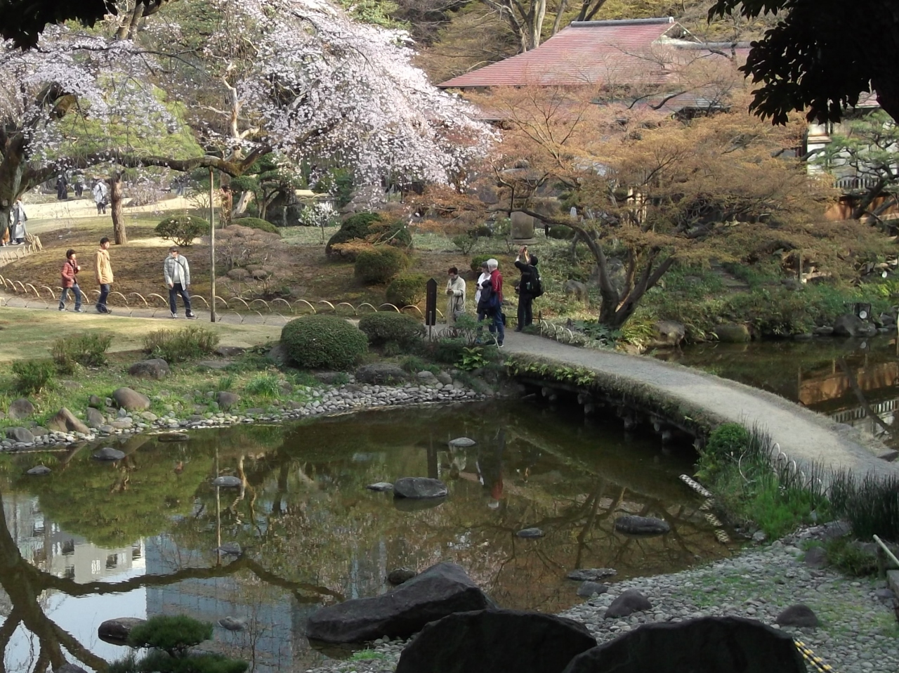 小石川後楽園の西側、大堰川の上に架かる京都・嵐山の渡月橋を模した橋です。欄干があるわけでもなく橋の長さも短いので、本物とはちょっと違いすぎるかなぁ、と思ってしまいますが、周りにはモミジの木などもあり、紅葉の時期にはミニ嵐山が見られるかもしれません。