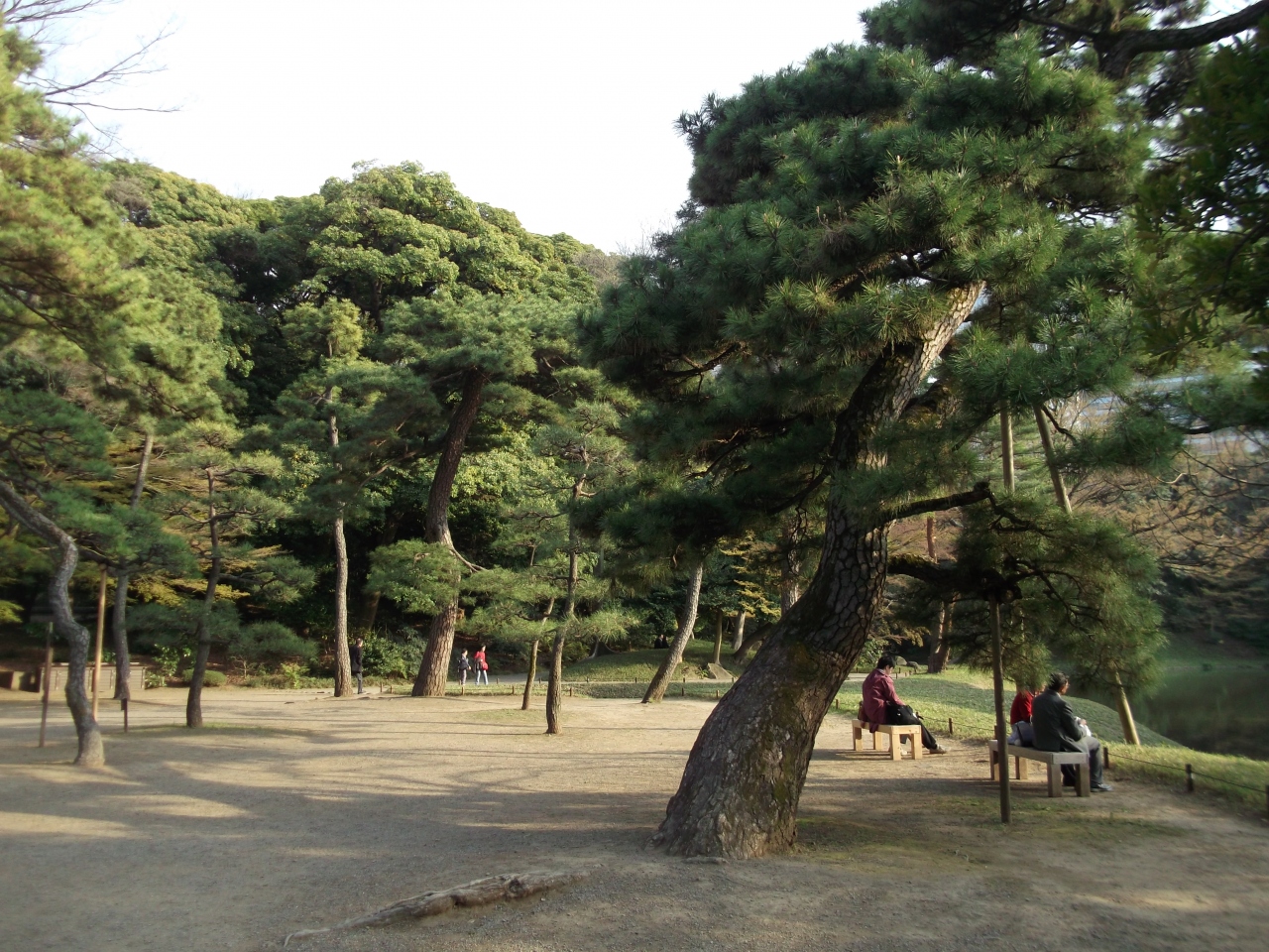 小石川後楽園の中央にある大きな池・大泉水の北側、蓬莱島の裏側が見えるところにある、松の木が植えられている場所です。三保の松原を模したものですが松はそれほど密集しておらず、どちらかというと空き地のような感じです。ベンチもあるので、散策途中のちょっとした休憩場所にもなっています。