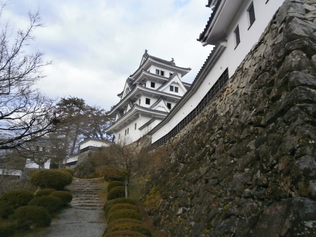 続日本100名城に選出されています。天守閣は昭和8年に建造された模擬天守で、木造のものでは日本最古だそうです。公共交通機関で訪れる場合は、長良川鉄道の郡上八幡駅からコミュニティバスで約20分城下町プラザから急な山道を15分ほど登ることになります。