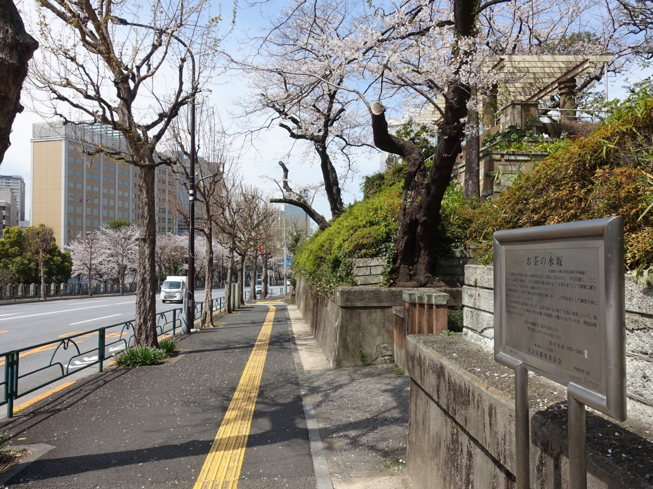 外堀通りが、御茶ノ水駅から水道橋駅にかけて、神田川に沿ってなだらかな坂になっており、「お茶の水坂」の名称で親しまれています。4月の上旬という事で、道沿いの桜の木も花を咲かせており、春らしい美しい光景でした。坂沿いにある「元町公園」も合わせて必見スポットと感じました。
