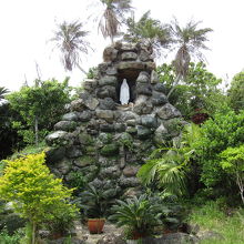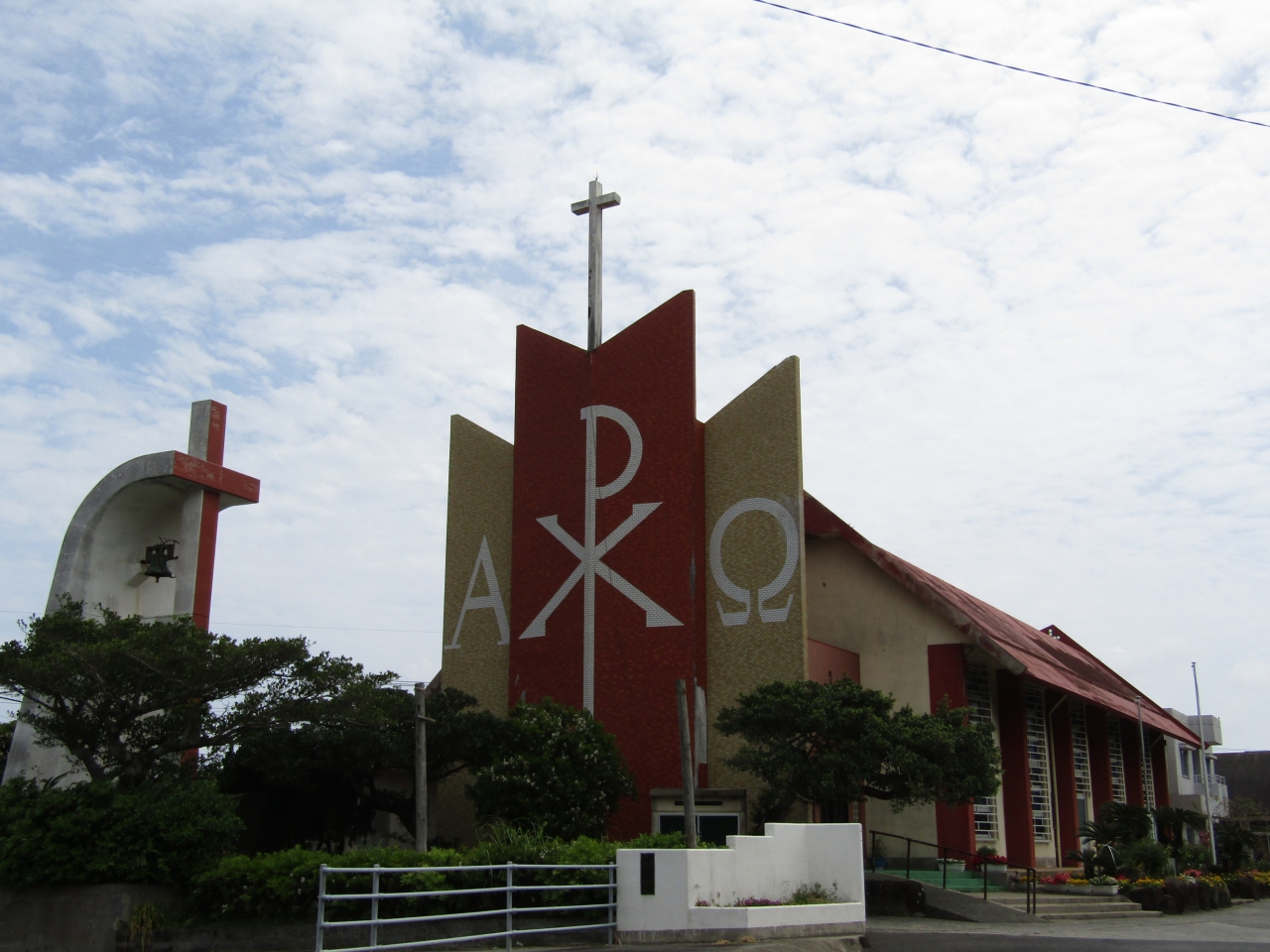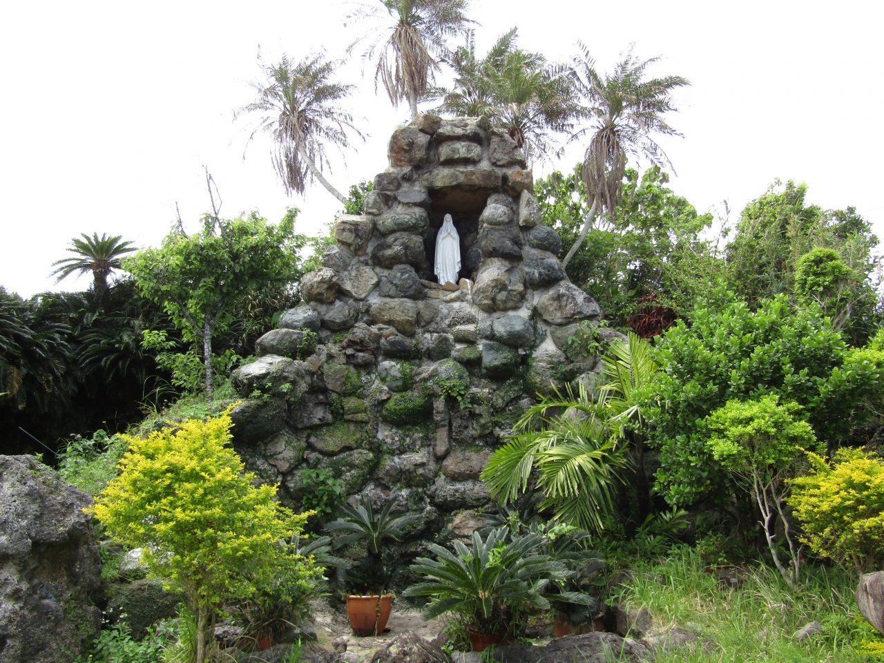 奄美大島には、60を超える教会が存在するそうです。その中で一番北にある教会です。灯台の帰りに立ち寄りました。独特の色合いの建物は、興味を引きました。教会の裏側に、石組みの中に立たれるマリア様を見つけることができました。