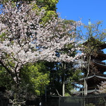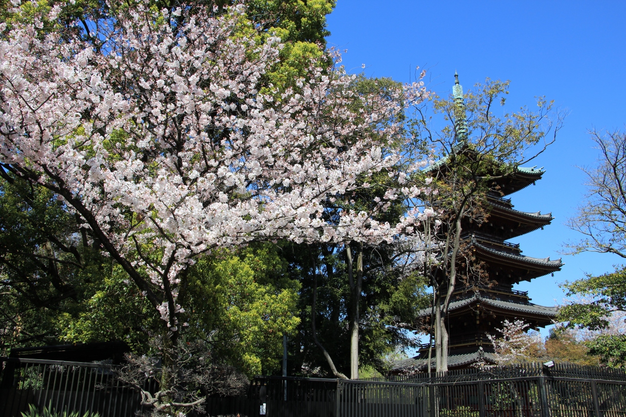 旧寛永寺五重塔は寛永寺の境内が縮小させられたため今は上野動物園内に取り残された様な状態となっています。動物園に隣接する上野東照宮の境内から五重塔の全容を見られます。桜の咲く頃は桜とのコラボを楽しめて良かったです。