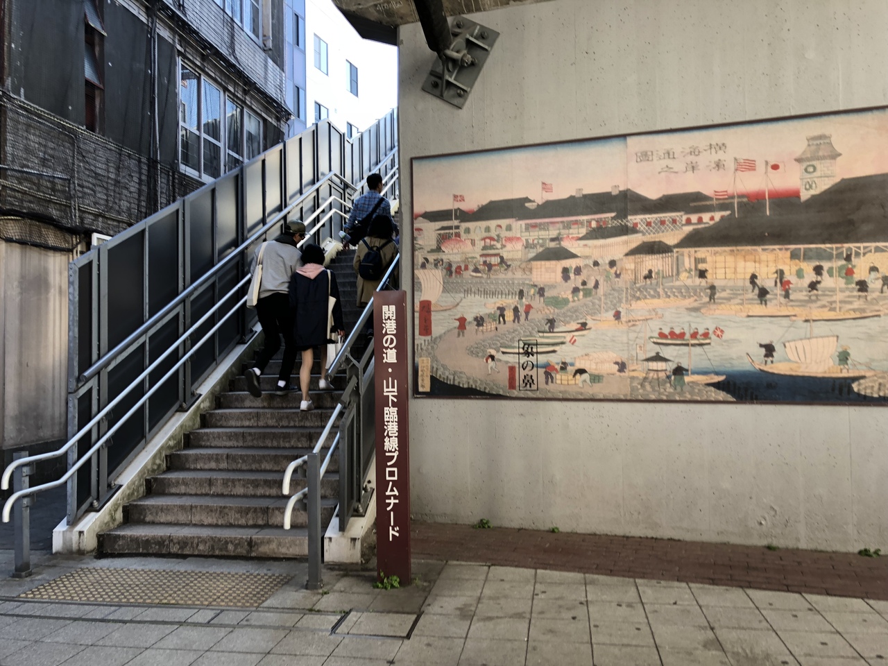 赤レンガから橋を渡って、象の鼻パークから山下胡淵を結ぶ道で、途中でも階段で降りられるようになっています。