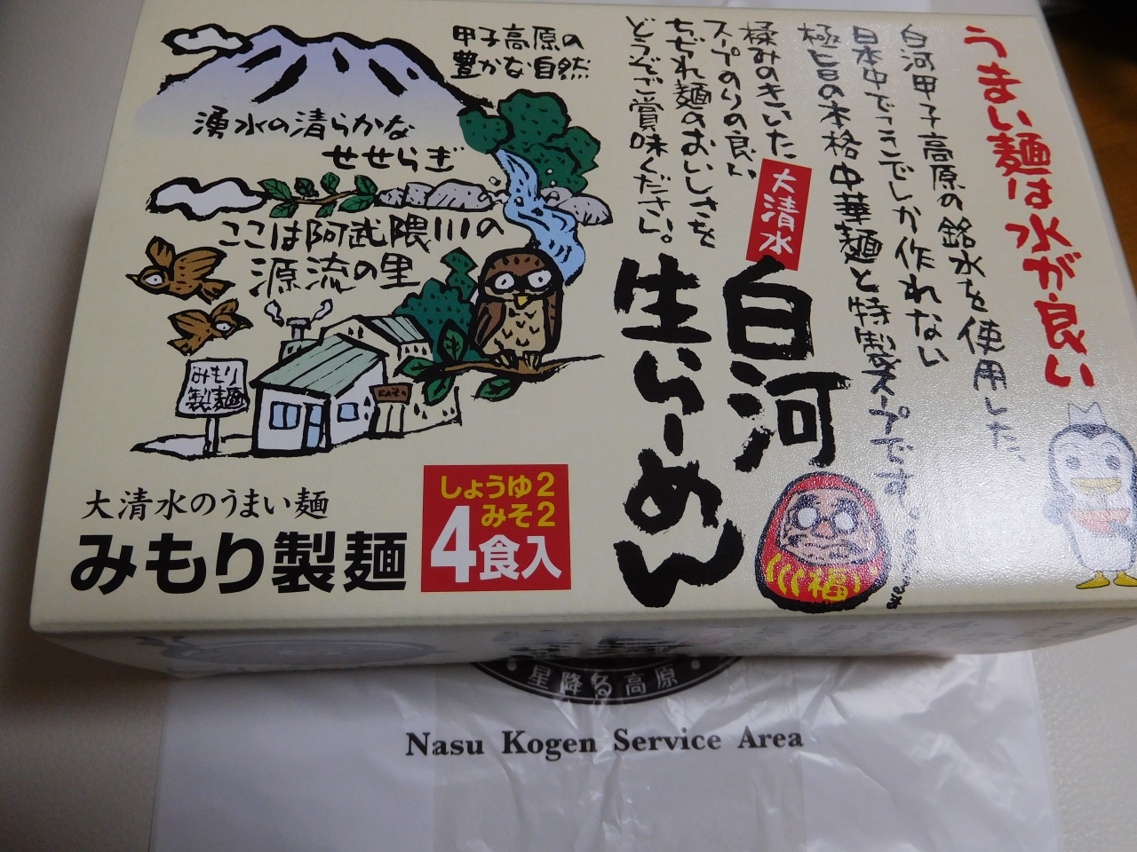 東北自動車道「那須高原SA上り線」施設の左側が、お土産品などを取り扱う「ショッピングコーナー」になっています。那須高原の牛乳やチーズなどの乳製品、ソーセージやハムなどの加工食品の他にも、栃木県のイチゴを使ったお菓子、東北地方のお土産品など、いろいろと揃っていました。今回は「白河ラーメン」などを買いました。店内はとても見やすくレイアウトされていて、買い物しやすかったです。