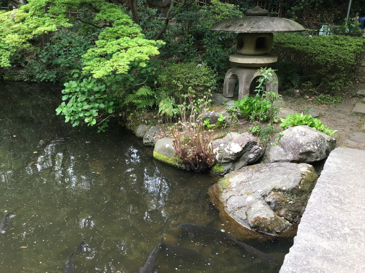 園内は虫が多かったです。綺麗に整備された庭で、池には大きな鯉がいました。7時30分から17時まで開いています。