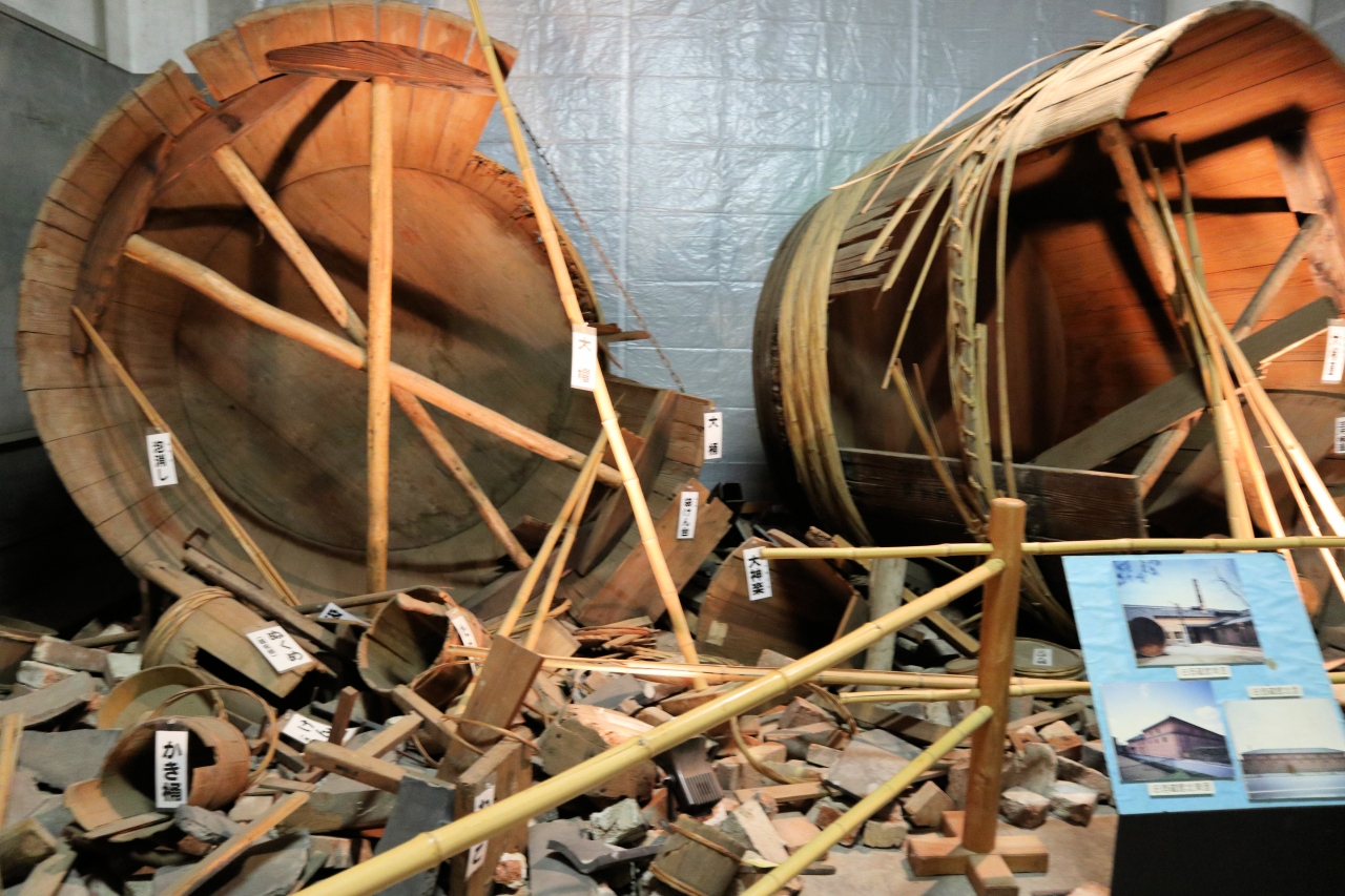 昔の酒造りの風景が再現されていたり、大きな樽の中で記念撮影できたりします。