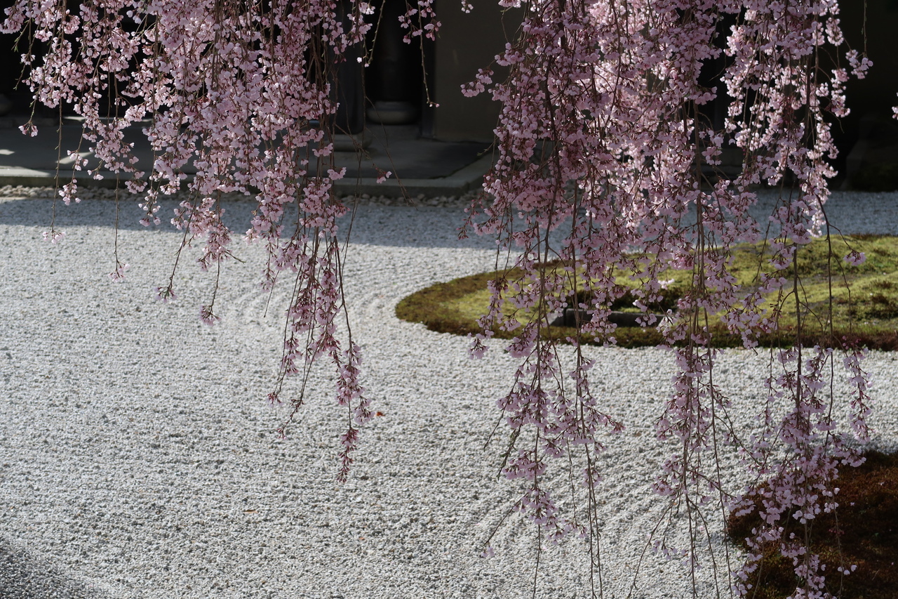 青空の下、白砂と枝垂れ桜の景色は、昔見た景色と変わらず、とても美しく、