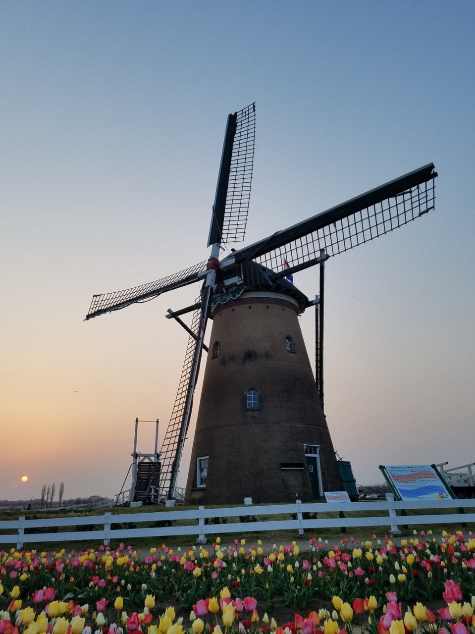 佐倉ふるさと広場は、西印旛沼の畔にあり、佐倉と縁のあるオランダの風車がランドマークの施設です。かつての田んぼが整備され、季節に合わせ、チューリップ、ひまわり、コスモスの花畑が作られます。普段は週末でも人は少ないですが、花咲く時期には祭りが開かれ多くの人が集まります。