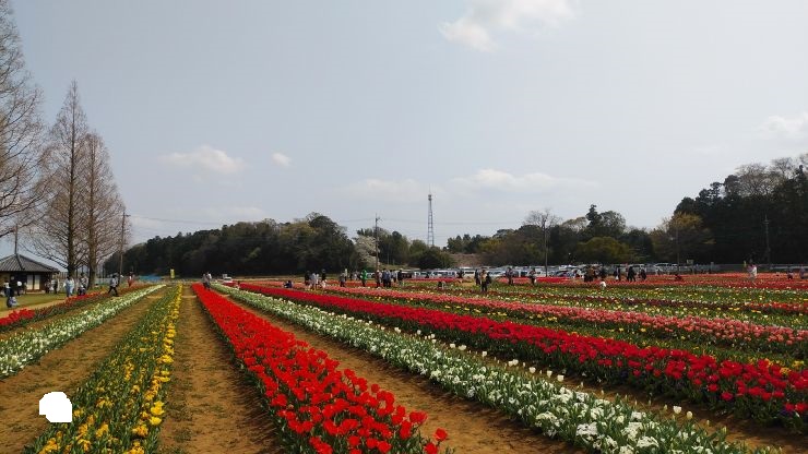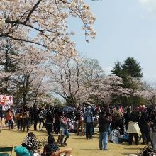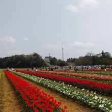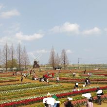 4月上旬の時期は桜とチューリップが見頃。あけぼの山では桜が満開で花見をしながらのステージイベントが盛り上がっていた。また、風車の近くでは色とりどりのチューリップも見る目を楽しませてくれた。