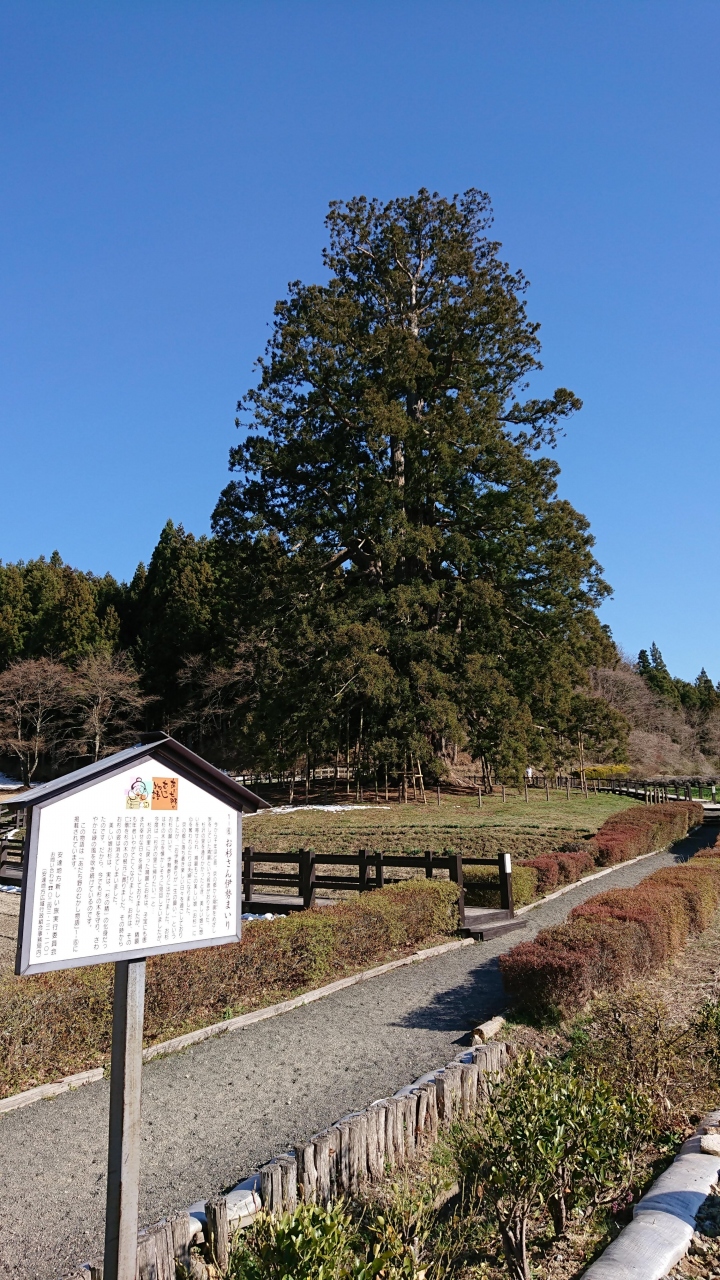樹齢1000年を超えると言われているそうです。高さは約50メートル位ある巨大な杉で、全国でも有数の大きな杉の木だそうです。周囲は公園のようにきれいに整備されていて歩きやすくなっています。周囲には桜の名所もあり、一緒に立ち寄ってみました。
