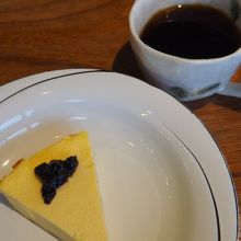 手作りチーズケーキと珈琲のセットは、当店が提供するセットメニューの1種。
