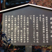 銭形平次と言えば北大路欣也等のテレビドラマで知られますが、神田明神下に住んでいる設定になっています。それに因んでこの石碑は建てられたそうです。銭形平次は知っている人も多く、記念撮影をする人が多く人気です。