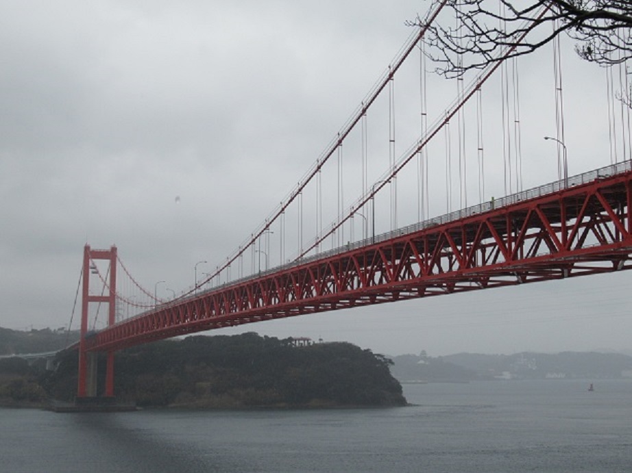 今回は長崎県北部に位置する平戸を旅行しました。昨年世界遺産に登録された施設がある平戸島や生月島を散策するために長崎空港からレンタカーを借りドライブです。そして田平町から平戸島へはこの「平戸大橋」を渡って行きます。朱色をしている橋は1977年開通で長さは665mあります当時は有料だったのですが現在は無料になっています。生活に必要な橋だし我々観光客から見ても多くの方たちが往来し活気のある島になって欲しい願いもありますので無料通行は良いことですね。さらに生月島へは淡いブルーの「生月大橋」を渡って行きますが、朱色と青で色分けした島巡りも良いドライブとなります。写真は橋の下にある撮影スポットで撮影しましたがこの日は小雨であまり良くありません。他の人の写真を見てくださいね。迫力ある美しい橋ですよ。さぁー渡って世界遺産の街平戸へ行きましょう。