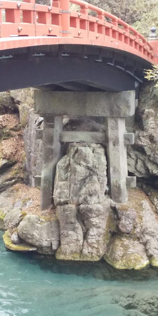 橋の下に鳥居の支え