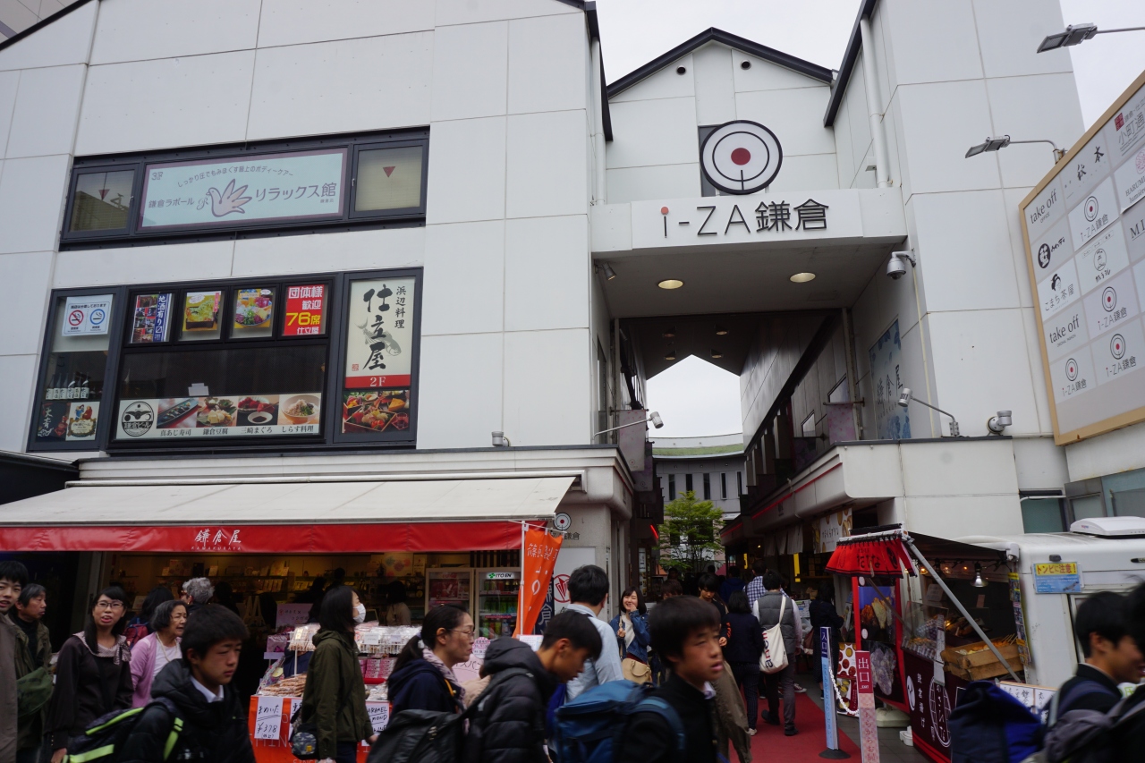 アイザ鎌倉は、小町通りに入ってすぐ左手。鎌倉屋というお土産物屋さんや天ぷらのお店で賑わっていますが、その奥に通路が続いていて、小さな路地みたいなことになっていて面白い。それを抜けるとビルに囲まれた中庭のような場所もあって、鎌倉の隠れた迷路のような楽しさを感じました。