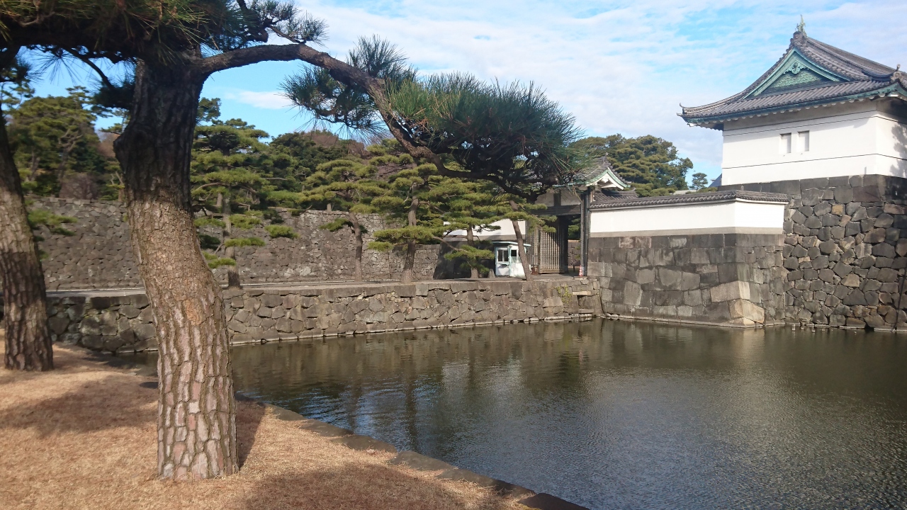 桔梗門橋の前に皇居一般参観のための人が集まっていました。当日受付で、桔梗門から入って皇居を参観できるそうですが、1時間ほどの団体行動だったので参加はしませんでした。この橋は、桔梗濠と蛤濠の間に架かっている橋で、皇居東御苑にある高級警察本部に通じる土橋です。通常では渡ることができませんが、とても立派な橋でした。
