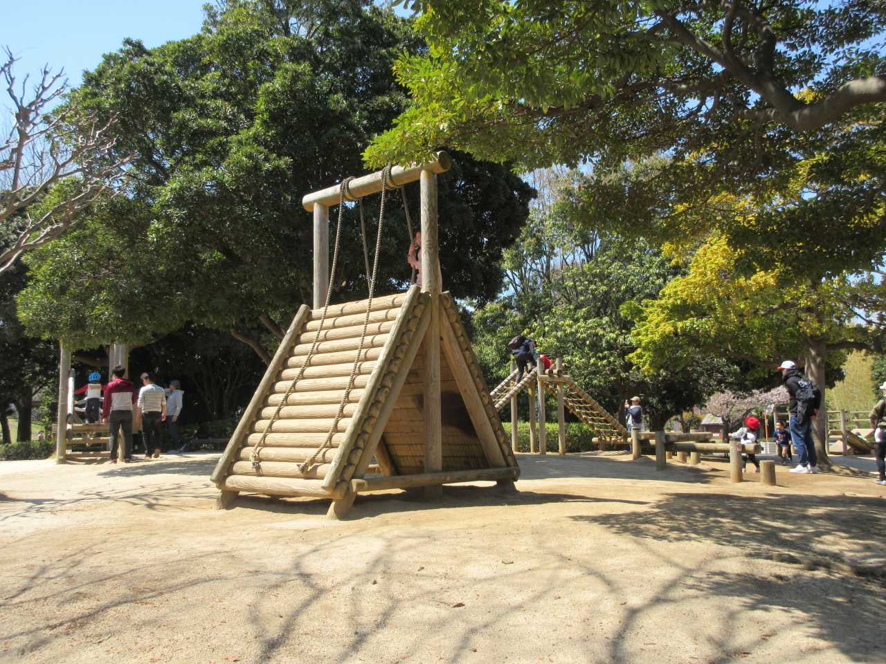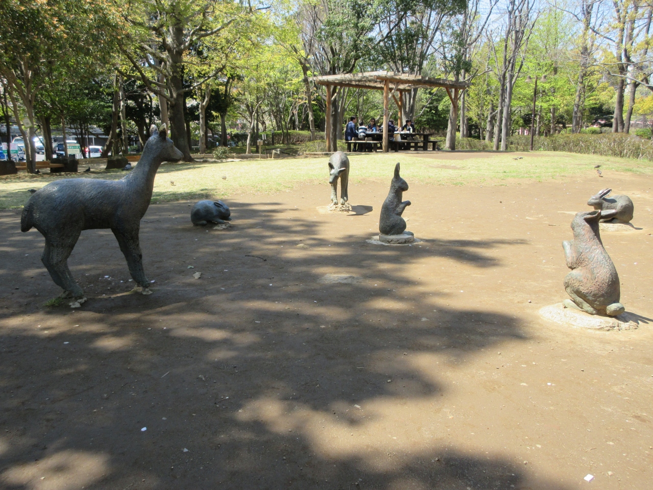 長い総合レクリエーション公園内の東にあるBBQ場がある公園です。草地や江戸川富士と呼ばれる草地の小山があり、子供向けのフィールドアスレチックが4種類、大人用の健康器具、石のすべり台などがあります。特徴は予約制のBBQ場です。かまどや屋根付きテーブル席など選べます。週末いくつか空いていましたが、大勢の人がBBQを楽しんでいました。急な斜面の江戸川富士に上り公園や周辺の住宅街を眺めました。散り始めている桜並木を見ました。草地に置かれたシカとウサギの像がかわいかったです。